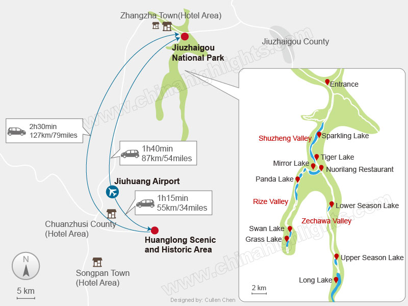 Visit the most beautiful parts of Jiuzhaigou and Huanglong at your own pace with a smart route.